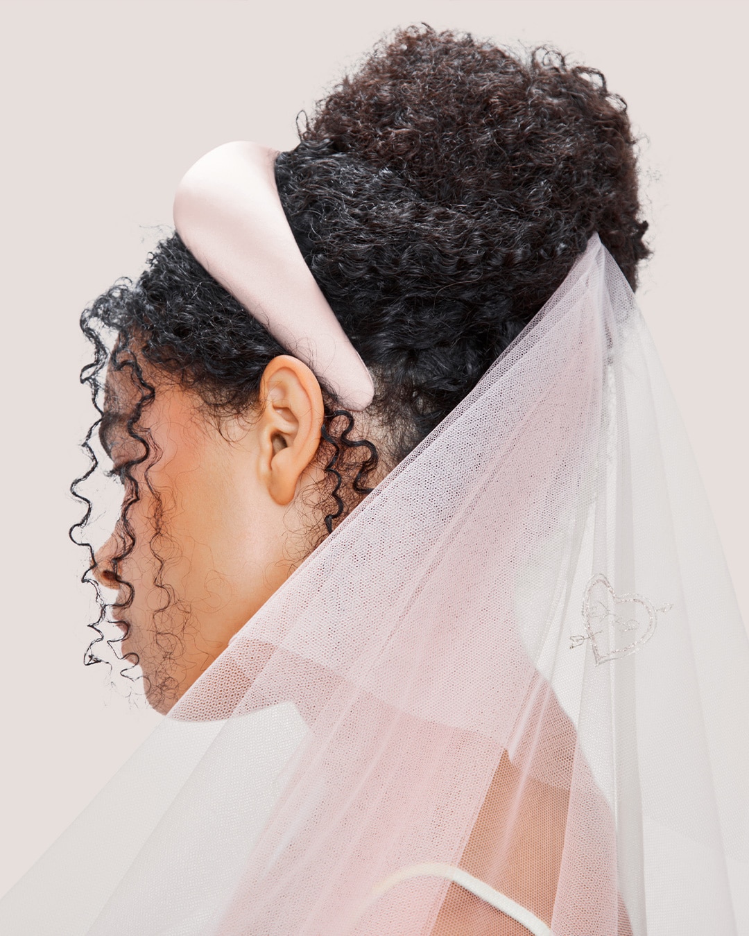 Padded silk satin headband with smooth finish and structured silhouette. Wear alone or pair with one of our veils.